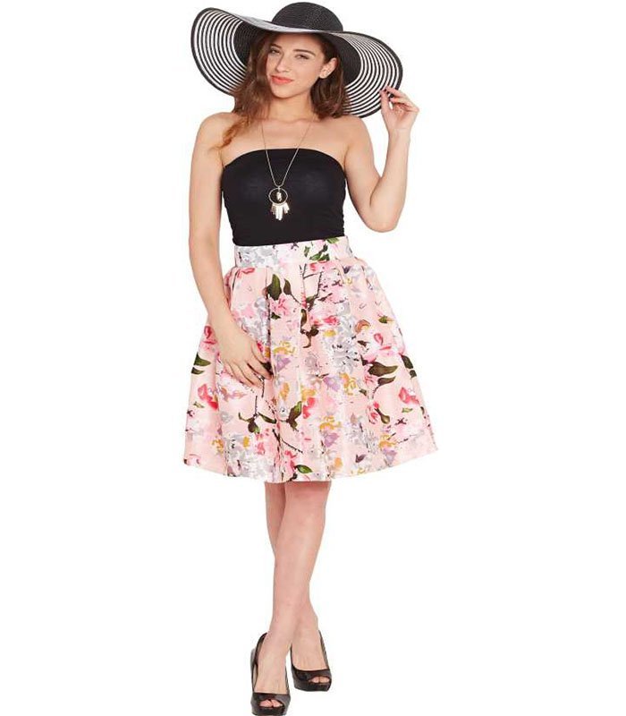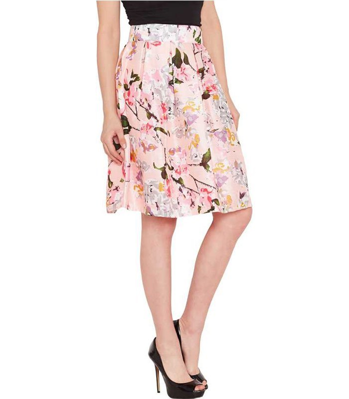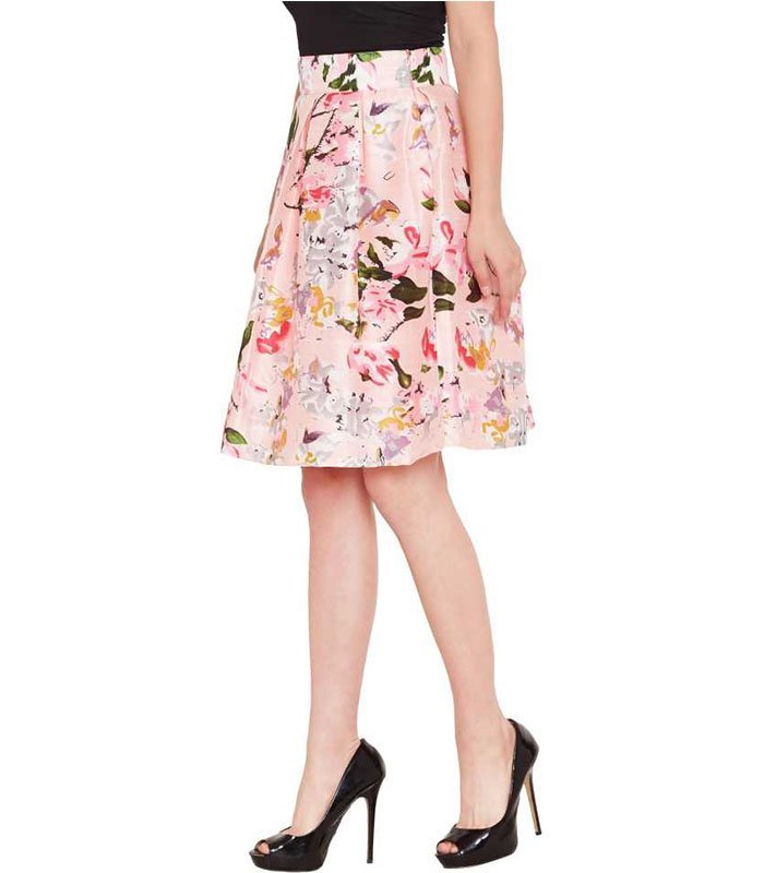 Sassfrass Women Floral Print Pleated Pink Skirt In Stock