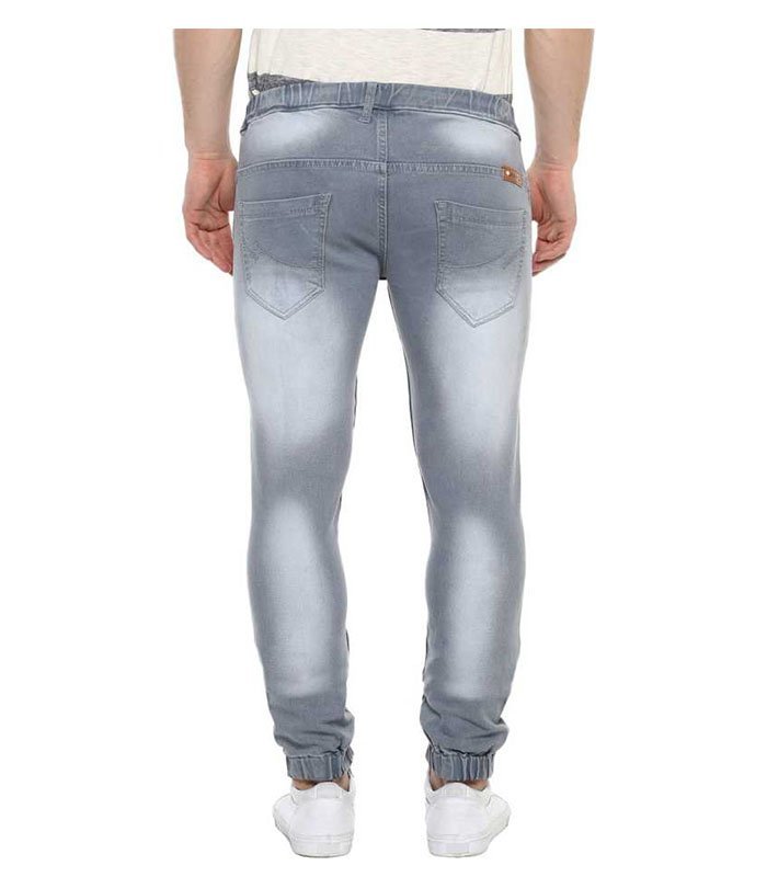 Cotton Lycra with Stretch, Regular Length, Slim Fit, Stylish Washed Light Grey Jogger Jeans, Mid-Rise
